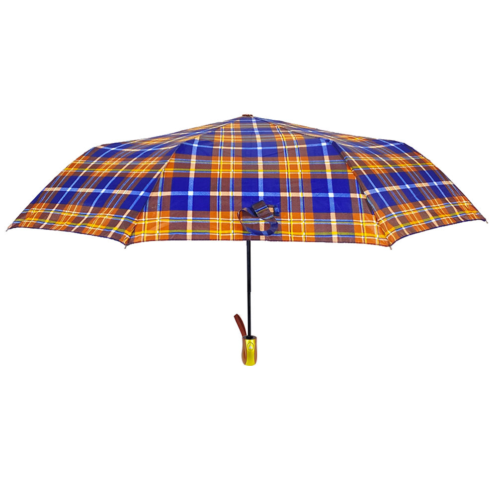 Automatic open 3 folding umbrella with check design