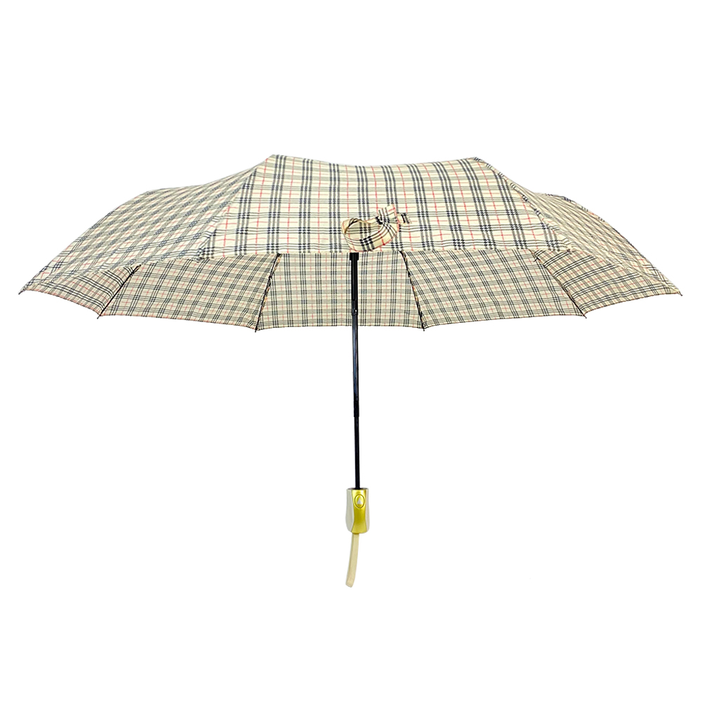 Ovida 21 Inch 8 Ribs 3 Fold Auto Open Pongee check fabric Unisex Umbrella