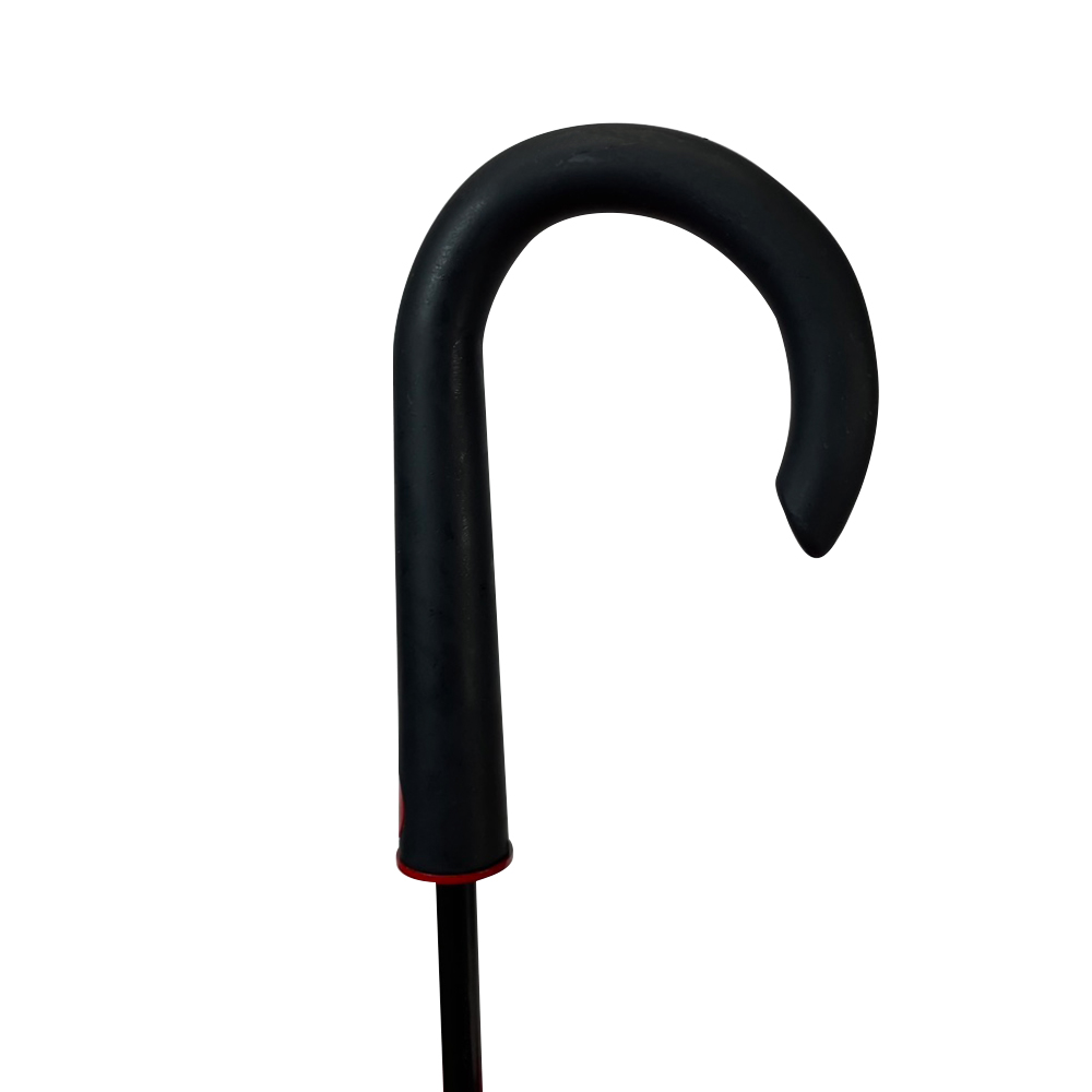 - Specially, J shape rubberized plastic handle with auto open button can choose color to match umbrella’s fabric.