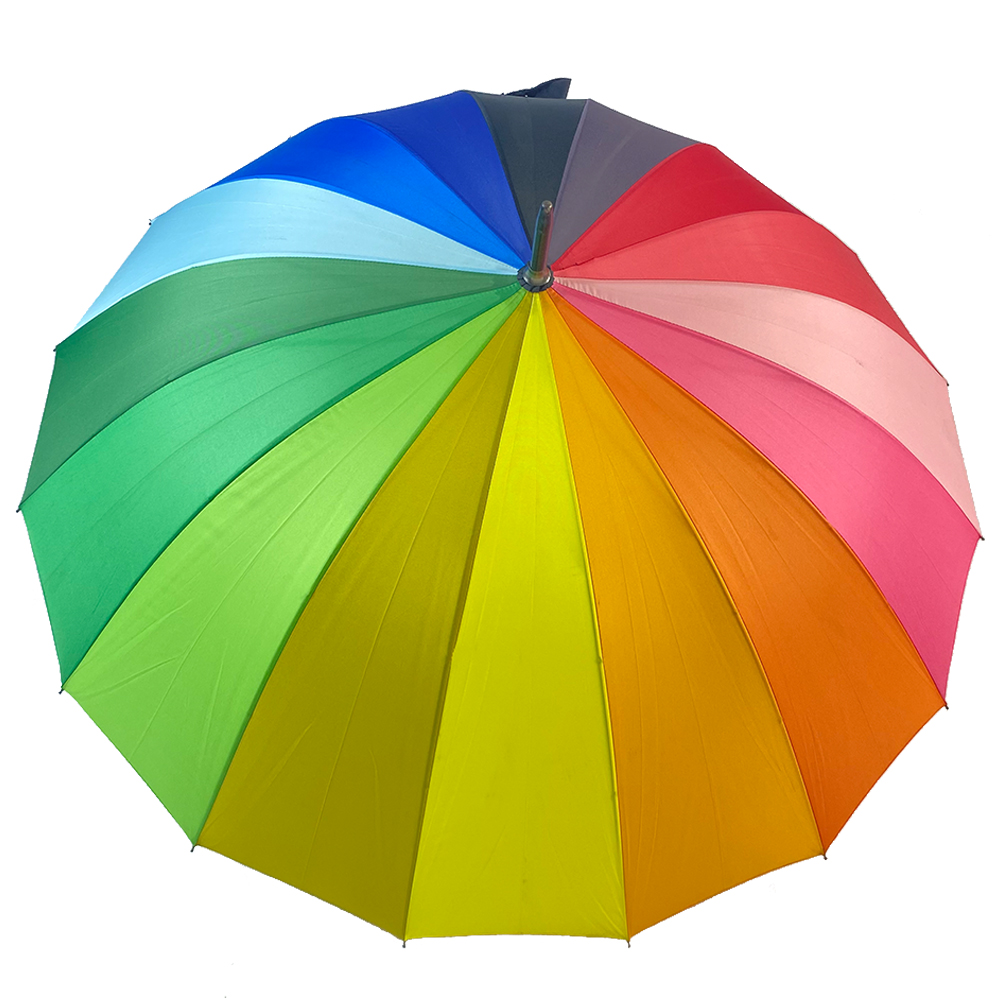 Quality custom umbrella, automatic straight stronger 16ribs rainbow umbrella.