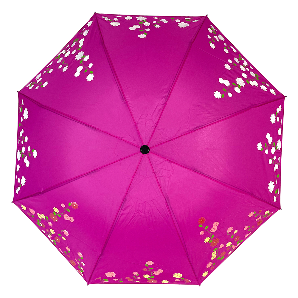 - On magic umbrella’s fabric, flowers will change color by water spraying in the rainy day.